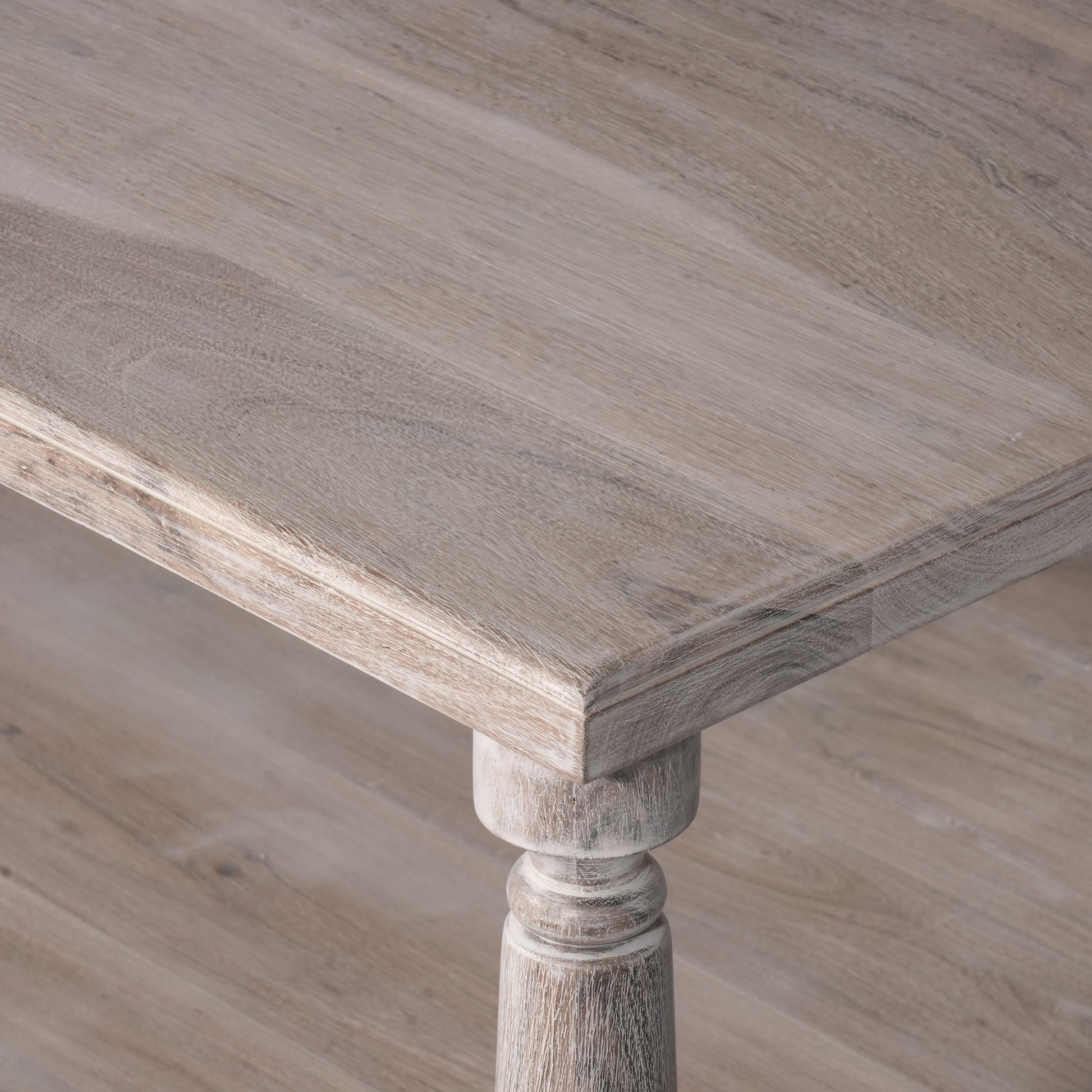 Material - Acacia wood in distress paint & water base PU coat matt .