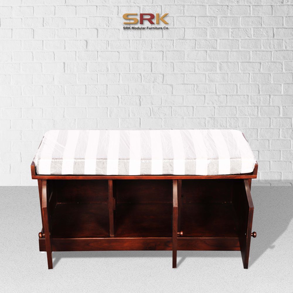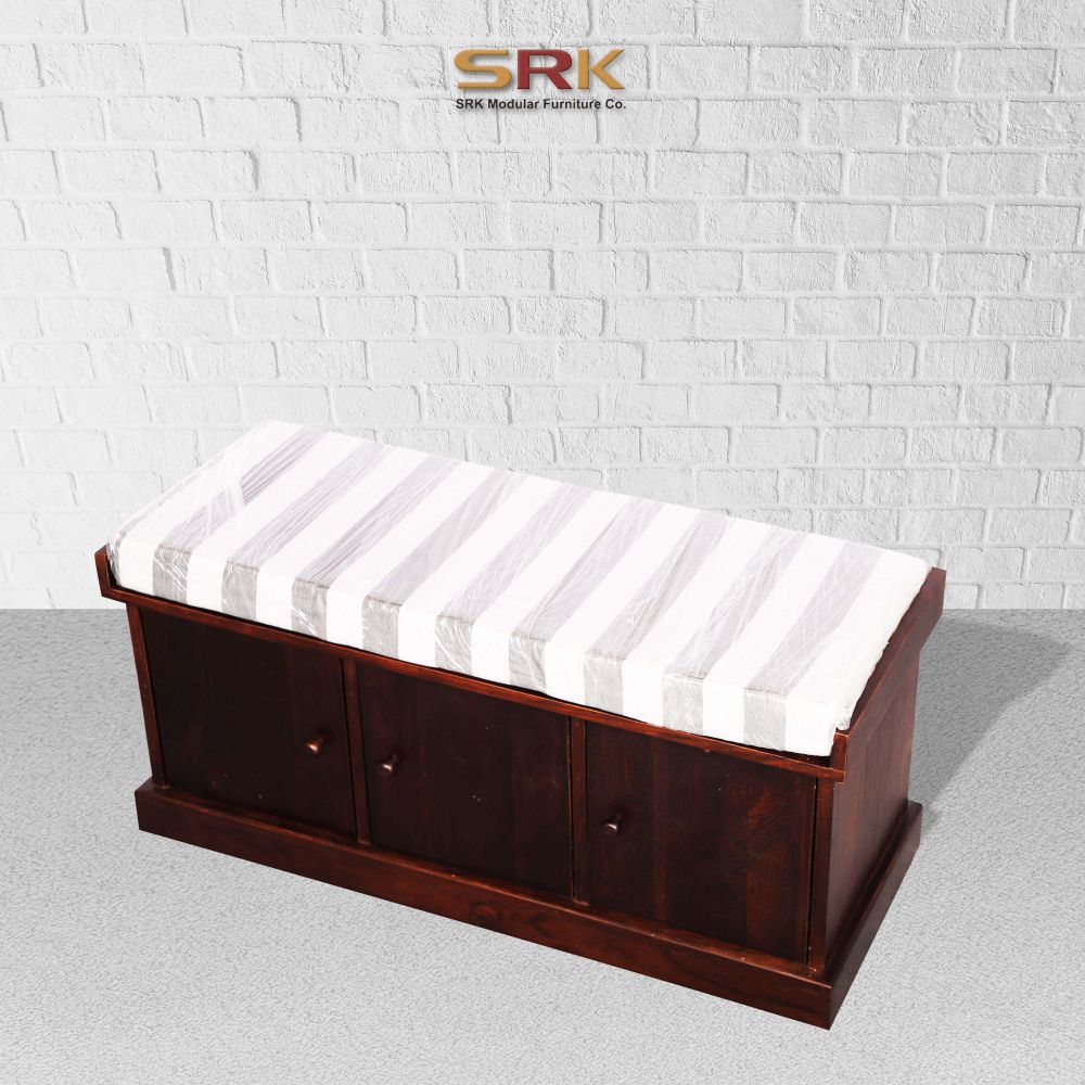 Sagwan Wood Entry Room Cabinet Shoe Rack With Cushion Walnut Finish Storage