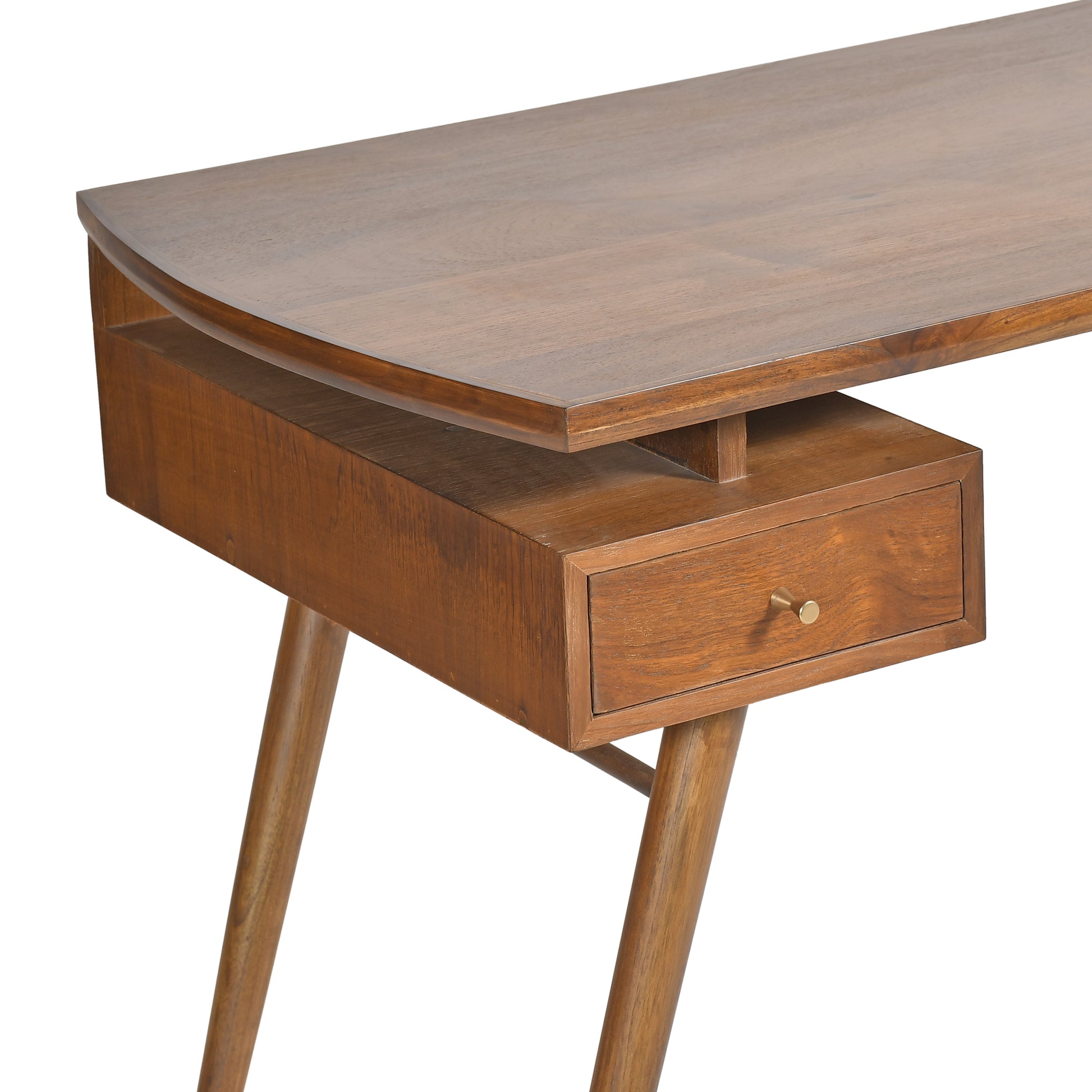 Two floating drawers provide convenient storage for essentials, while the angled legs add a touch of vintage elegance. Whether placed in a home office, study, or living space, this versatile desk enhances any interior with its minimalist yet sophisticated design.